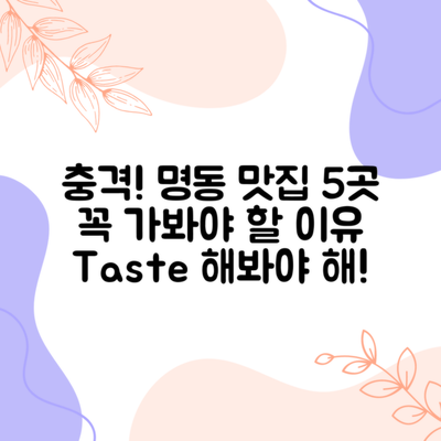 이렇게 명동에서의 미식 여정을 떠나게 되면, 잊지 못할 순간이 만들어질 거예요. 여러분도 맛있는 음식과 함께하는 특별한 추억을 만들어보세요!
